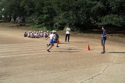 朝、校庭では50m走や100m走のタイムをとっていました。リレー選手や徒競走の並びのもとになります。