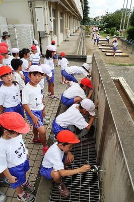 外での練習は汗をいっぱいかきます。練習がおわると子どもたちは水道に群がって水をゴクゴク飲んでいます。