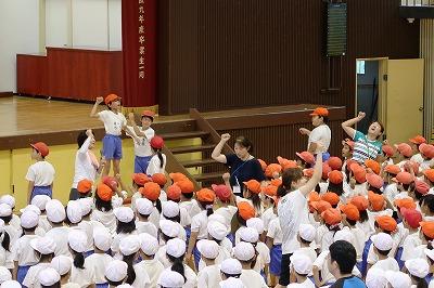 朝から汗がふきだしている子もいます。各学年とも熱中症にならないよう、水分補給と休養をしっかり呼びかけながら練習を進めています。