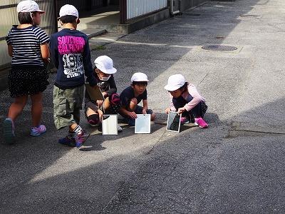 3年生は理科の学習で、鏡をつかって光の学習をしています。