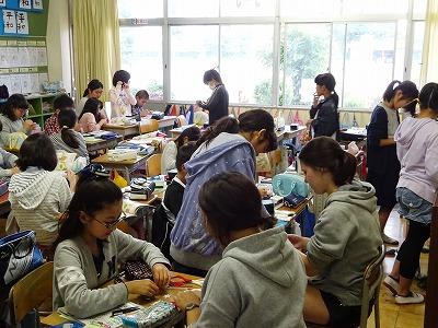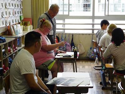 理科の実験に参加したり、習字をしたり、裁縫をしたり・・・と日本の小学生の授業を体験しました。