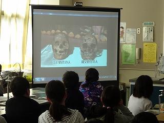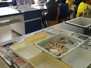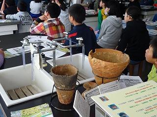 土器の実物や、発見された遺物などを用意していただきました。自分の目で見たり、手に取ったりして、学習を深めました。