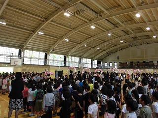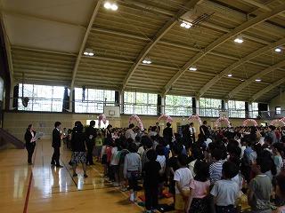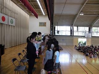 本日は、離任式があります。昨年度で本校を去られた先生方が、あらためてお別れに来校されました。子供たちがお礼の手紙や花束を用意してお迎えしました。