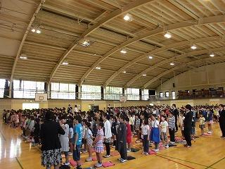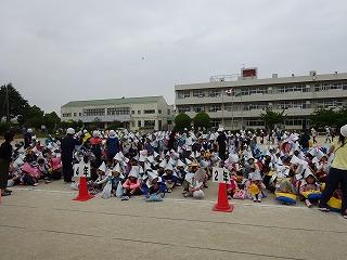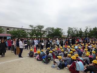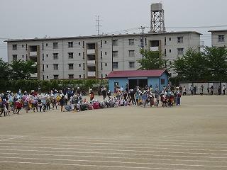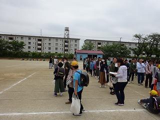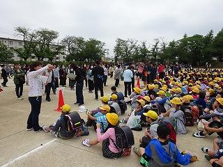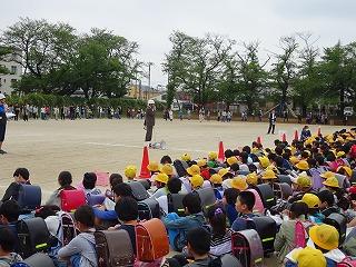 避難終了後、人数確認して、担当の先生や校長先生のお話がありました。