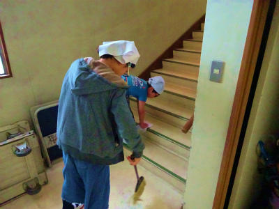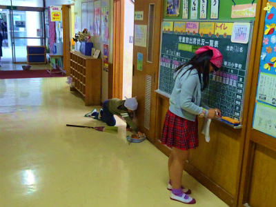 下の写真は、本日の清掃の様子。職員室前を掃除してくれている児童の様子です。本校の掃除の約束・無言清掃に取り組んでいます。