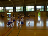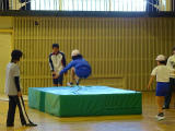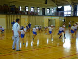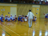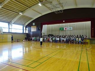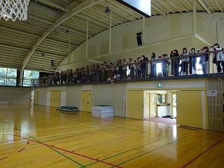 ↑ 早めに体育館集合した6年生が、最後の仕上げの練習をおこなっています。