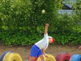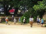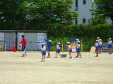 体力テストの期間です。本日は校庭で4年生がボール投げに励んでいました。