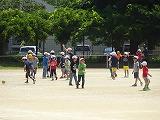 本日は、近隣の保育所の子供たちが校庭を散歩に来校しました。校庭のポンポコ山あたりで楽しそうに活動しました。