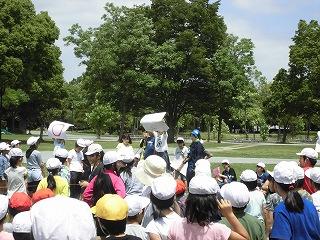 本日は、4年生は、春日部市役所と生態系保護協会の方を講師にお招きし、環境学習講座を開いています。講師の方のご指導のもと、学校の「自然の森」や中庭で、虫を集めたり観察したりしています。予想以上に多くの生き物が見つかったり、めずらしい虫を発見したりと、喜びや驚きの声をあげて、活動に取り組んでいます。