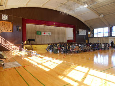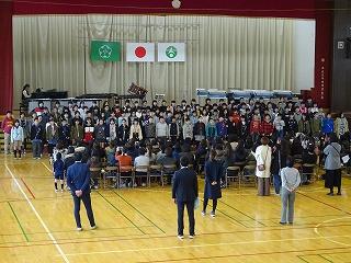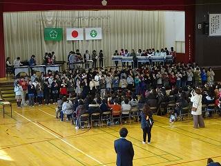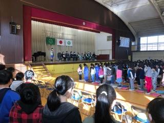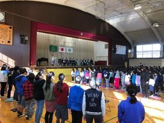 前回の音楽集会はインフルエンザで延期になっていいたため、2学年一斉の発表になりました。