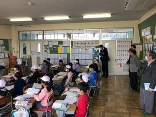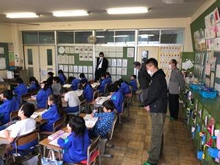 2校時に授業や校内の様子を参観していただき、子供たちが学習に取り組む姿や、廊下の作品などを見ていただきました。