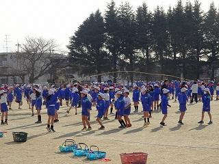 本日の朝のさわやかタイムは、なわとび大会です。どのクラスも今までの練習の成果を発揮して頑張りました。元気に声をかけながら、足を合わせています。