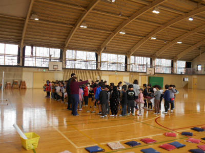 2時間目の体育館と校庭の様子です。