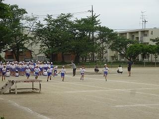 昨日よりも気温の低い朝となりました。本日の朝は、さわやかタイムです。天気はくもりですが、子供たちは校庭で元気に運動しています。今日は特に「走る運動」に取り組みました。