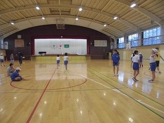 本日の朝はさわやかタイム。体育館でプール開き集会です。