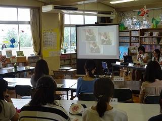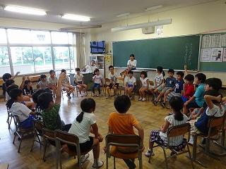 サマースクールでは、各教室で子供たちがプリントに取り組んだり、わからな所を教えてもらったりしています。今年のサマースクールも、サポートティーチャーとして、共栄大学・庄和高校・葛飾中学校の学生・生徒さんが来校して、本校の先生方と一緒にマル付けをしたり、子供からの質問に答えたりしてくれています。