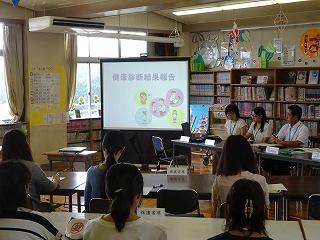 本日は学校封建委員会があり、学校医・学校薬剤師の先生や保護者の方に参加をいただきました。PTA家庭教育部との共同開催で、学校からの体力テスト・健康診断の報告、食育に関しての栄養教諭による講話、学校医・学校薬剤師の先生からのご指導などがありました。
