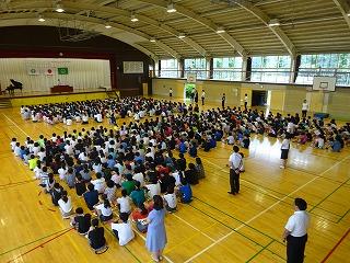 「市内陸上大会」「市民陸上大会」「陸上全国大会県予選会」「柴又100kマラソン大会・小学生100人リレー」「硬筆展」「むし歯0(ゼロ)クラス」の表彰があり、頑張った子供たちが表彰されました。みんなの大きな拍手に包まれました。