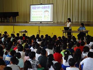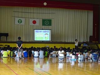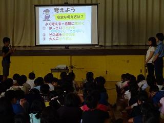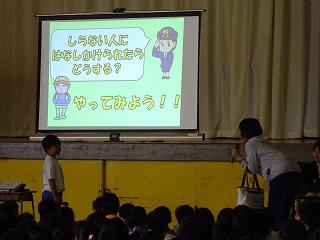 本日は、埼玉県警察の方をお招きして防犯教室です。3校時に1〜3年生、4校時に4〜6年生が防犯について学習をします。