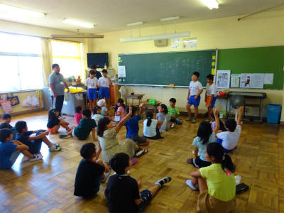 午前中のドリーム集会では、子供たちが異年齢の縦割り班でゲームやクイズを提供して、他の班や保護者・地域の方をお客さんとしてむかえるものです。(9:30~11:15は公開)