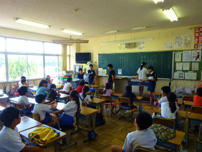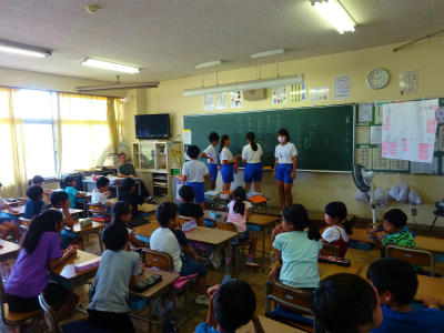 ↑ 先生の問いかけに一生懸命手を挙げて発表しています。発表する友達の意見もしっかり聞いています。