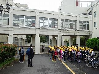 本日の朝は強い雨となりました。カサをさして子供たちが登校してきます。