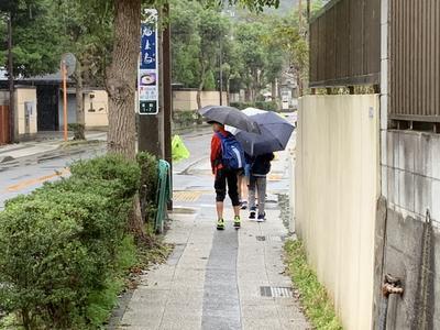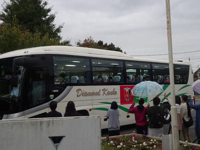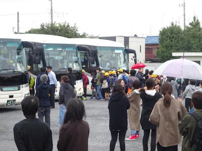 6:53 出発式が終わってバスに移動します。少し、雨が降ってきました。