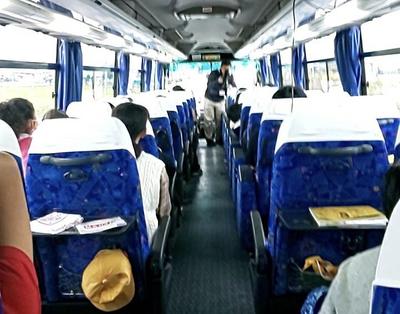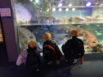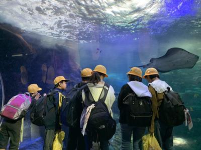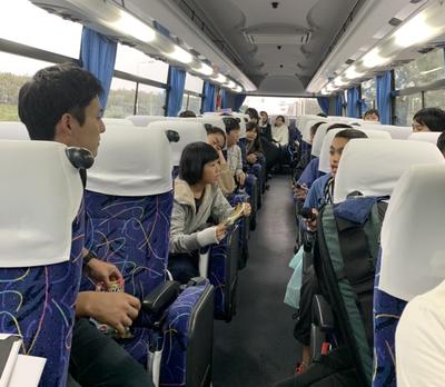15:50水族館での見学を終えて、バスに乗車しました。ホテルに向けて出発しています。バスの中では、活動報告会などをおこなっています。今のところは具合のわるい人もなく、みな元気な様子です。