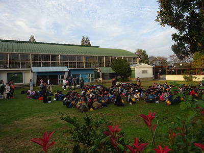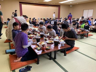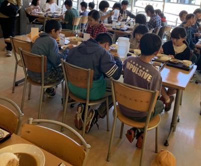 12:30 各クラスとも、ぐあいわるい人もなく、みな食事をしています。昼食のカレーライスをおかわりする子もいて、元気なようすです。食事後は、いよいよ帰路につきます。