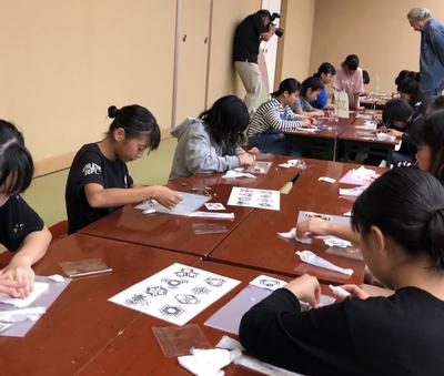 20:25 夜の体験学習・寄木細工体験が始まっています。