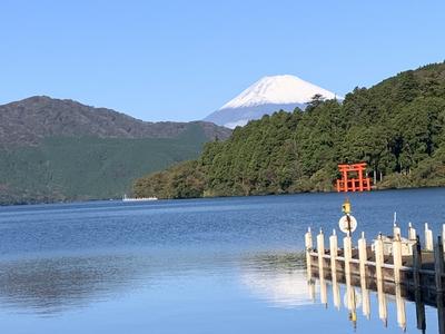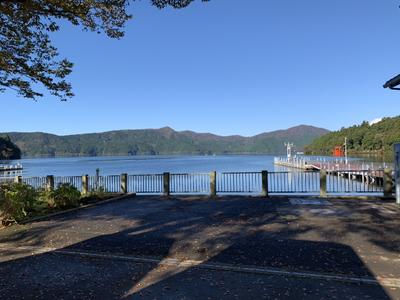 8:35 芦ノ湖に着きました。富士山がきれいです。