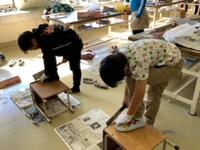 左の写真は、3年生の書きぞめ練習の様子です。校内書きぞめ競書会に向けて頑張っています。