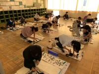 左の写真は、3年生の書きぞめ練習の様子です。校内書きぞめ競書会に向けて頑張っています。