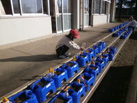 1年生は、チューリップの水やりに夢中です。芽が出てくるのを楽しみしています。