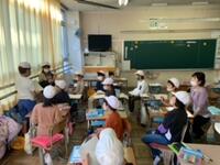 埼玉県指定無形文化財・武州中島紺屋さんから講師をお招きし、社会科の学習の一環として、5年生が藍染め体験をしました。染める前の布の所々を輪ゴムで縛りますが、その縛り方によって様々な模様となります。出来上がった自分だけの模様を見て、子供たちは嬉しそうでした。