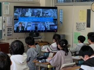 5年生は、トヨタ自動車の社会科見学をリモートで行いました。モニターを通じて工場内を案内していただきました。質問にわかりやすく答えていただくなど、双方向のやりとりができ、教科書や資料だけでは得られない体験となりました。