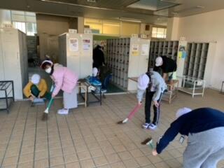 桜っ子が掃除をしている様子です。誰もおしゃべしなどすることなく、黙々と取り組んでいます。