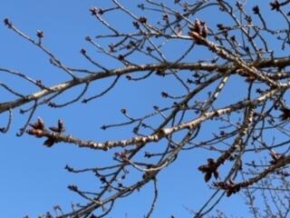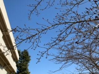 朝礼台近くにある河津桜の木です。だいぶ芽がふくらんできました。まだまだ寒い日が続きますが、