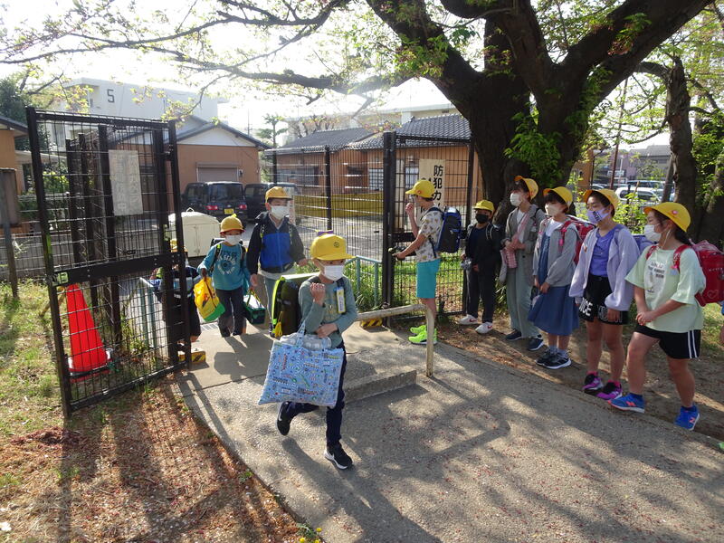 今日は、全学年の児童が揃っての初めての通学班登校、