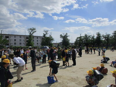 保護者の皆様にも訓練に参加いただいた「引き渡し訓練」では、