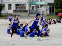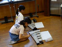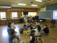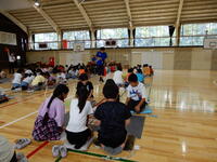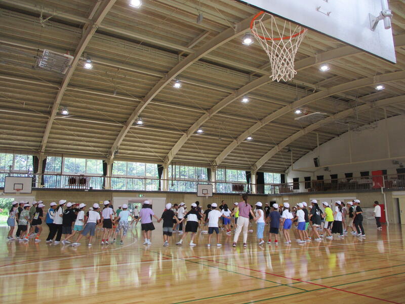 5年生が、林間学校のキャンプファイヤーの練習で、