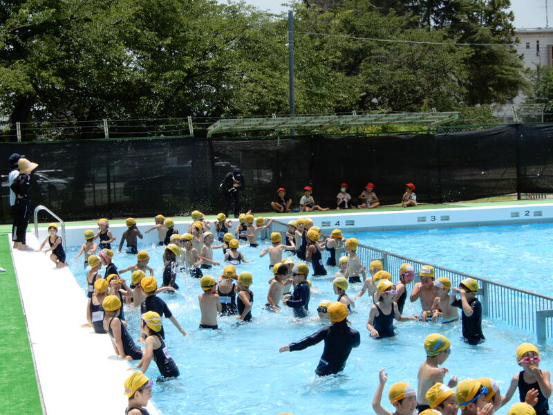 桜川小学校のプール学習、今年度は1年生がスタートでした。