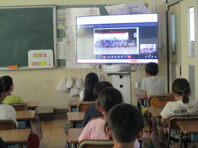 最後に6年生代表児童を中心に、全校児童からエールを送りました。