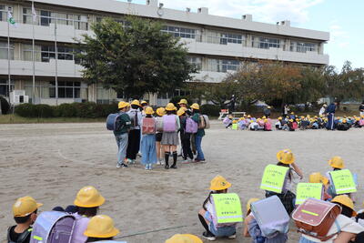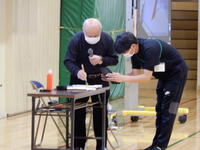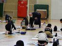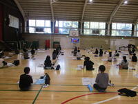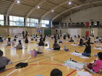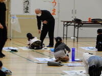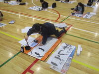 講師の野口先生をお招きし、体育館で「こうし」の字を書きました。