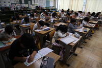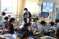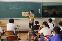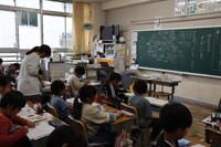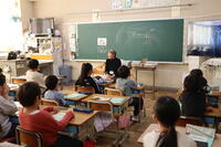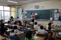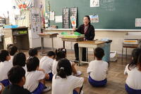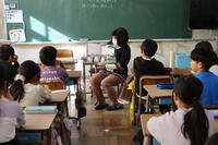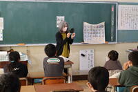 筆の持ち方や力の入れ方など、一文字一文字ていねいに教えていただき、子どもたちは真剣な表情で取 り組んでいました。