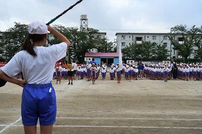 朝から汗がふきだしている子もいます。各学年とも熱中症にならないよう、水分補給と休養をしっかり呼びかけながら練習を進めています。