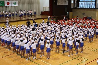 体育館の屋根をうつ雨の音がすごかったですが、先生方に気合いをいれられた子どもたちの歌声は、それ以上の迫力でした。