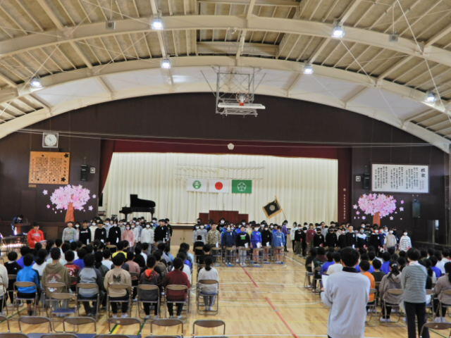 証書の授与、呼びかけ、入退場など一通りの動きを、2学年合わせて行いました。