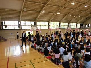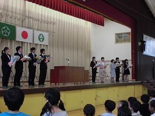 本日は、離任式があります。昨年度で本校を去られた先生方が、あらためてお別れに来校されました。子供たちがお礼の手紙や花束を用意してお迎えしました。