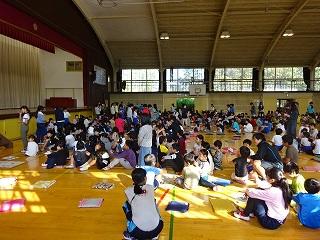 本日の朝は児童集会がありました。集会委員の企画・進行で、楽しいゲームに取り組みました。1~6年生の縦割り班で協力して活動しました。